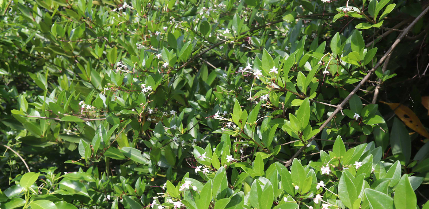 Cây sú vẹt là loài cây ngập mặn có khả năng sống bền vững trong môi trường nước lợ và đất mặn. Với bộ rễ chống chắc chắn và khả năng chịu mặn cao, cây sú vẹt giúp giữ đất, ngăn xói mòn và cải tạo môi trường ven biển. Vào mùa hoa, những bông hoa sú vẹt nhỏ li ti, màu trắng ngà tỏa mùi thơm nhẹ, là nguồn mật tuyệt vời cho các đàn ong.